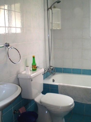 The large family bathroom is between the two bedrooms and has a shower over the bath.