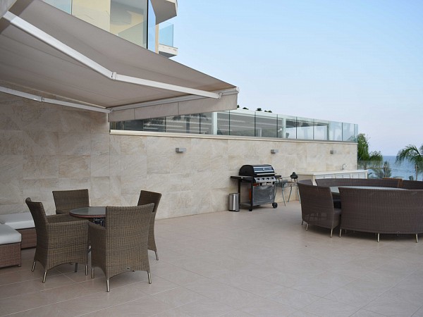 Apartment with large terrace and stunning sea views. Closed complex, large swimming pool, fitness room, two covered parking spaces, pantry.