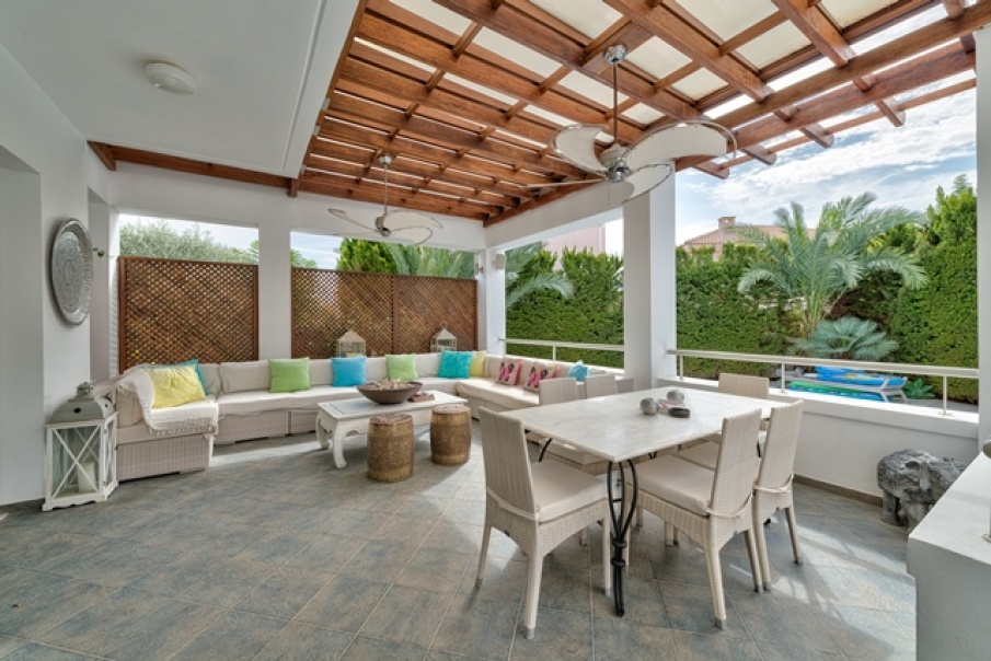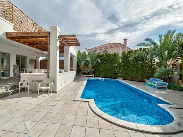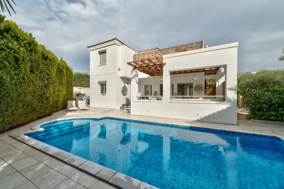 Exclusive 3 bedroom villa situated in a gated complex in the Amathunta area of Limassol city just a few minutes walk to the beach. The house includes a spacious living room, cozy bedrooms, bathrooms, fitted kitchen and ample veranda. Equipped with necessary appliances, offers luxurious design and modern architectural style. The house also has swimming pool, garden and access to all facilities of the complex. Excellent location close to the beach and city amenities.