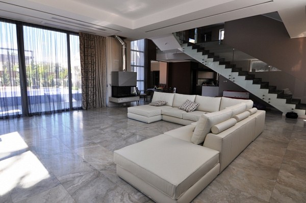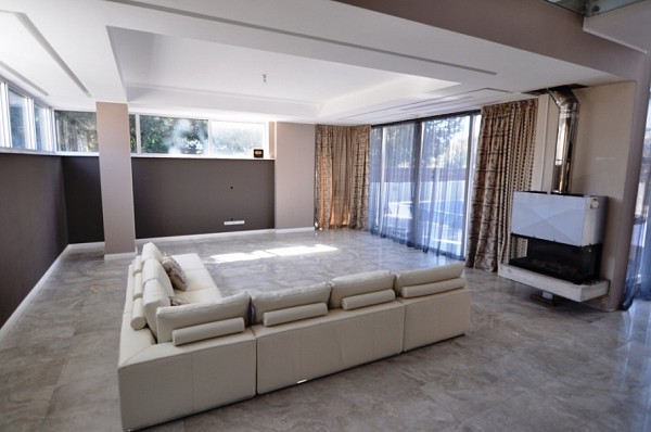 Two-storey luxury house in a modern style with a large plot, swimming pool, garage, barbecue area. On the ground floor there is a spacious living room with fireplace, kitchen, dining room, sauna with a separate entrance and lounge, also bedroom for guest. Office room, if necessary, can be easily transformed into a gym. On the second floor there are 4 spacious bedrooms with en suite bathrooms and dressing, also room for relax. Two large verandas leading to the patio overlooking the garden and swimming pool. Large flat roof can be used as another place to stay and the garden. Bar, jacuzzi, pergola, barbecue areas and a garden suite is elegantly accommodate on the spacious territory. In outbuildings on the roof of a laundry, kitchen and toilet. There is also room-maid. Excellent location close to all amenities and city center. Price is not included V.A.T.