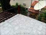 The newly renovated marble staircase leads to 3 bedrooms upstairs all with ample wardrobes and air conditioning. There is a balcony from the main bedroom with mountain and sea views There is a family bathroom with walk in shower.