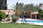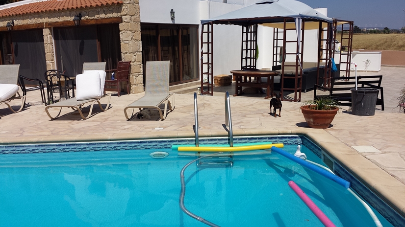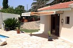 This unique villa has 250sqm of living space with covered pergolas to the sides and a charming rustic side entrance. Comprising of an open plan living area and 3 double bedrooms with ample cupboard space and fitted blinds. The spacious kitchen is furnished with high quality built-in smeg appliances and boasts a large oven with 6 ring hob and extractor, American styled fridge/freezer and dishwasher. There are large patio areas on all sides of the villa. Externally, the villa enjoys a mature garden and a stunning 10 x 5 private swimming pool with jacuzzi and water feature to ensure the ultimate in relaxation. Title Deeds
