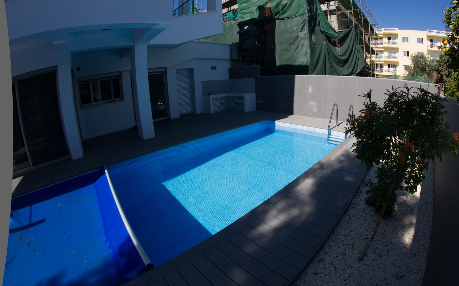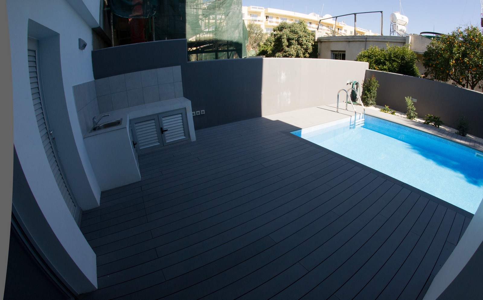 Decked Pool with outdoor shower