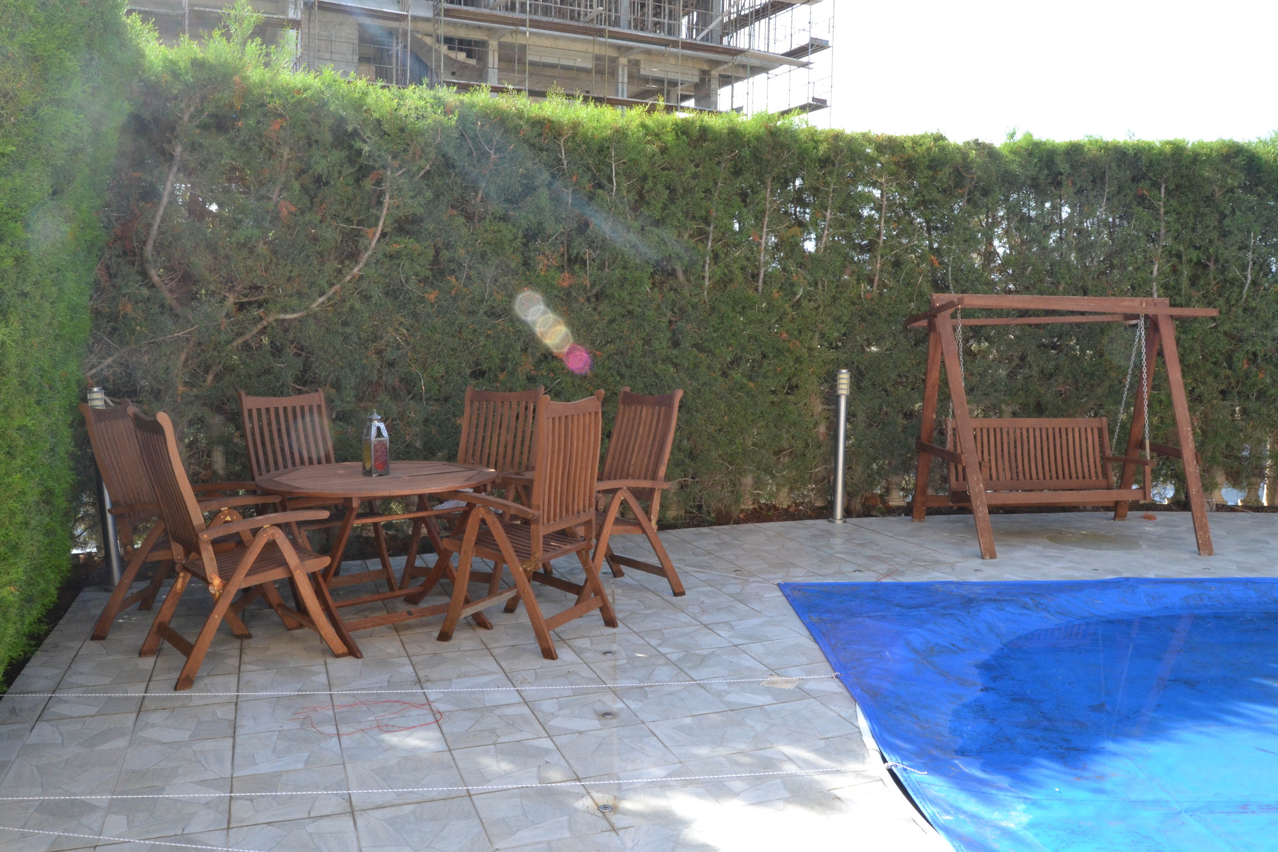 VILLA 4B/R, Royal View near Pascuссi Café, cover area 300m², land 400m², 3 floors, 4WC, A/C, F/F, TV, C/H, Sauna, Jacuzzi, Satellite antenna, private swimming pool, private garden, Alarm System, cover parking for 1 cars, open parking for 1 cars, 300m from the sea.