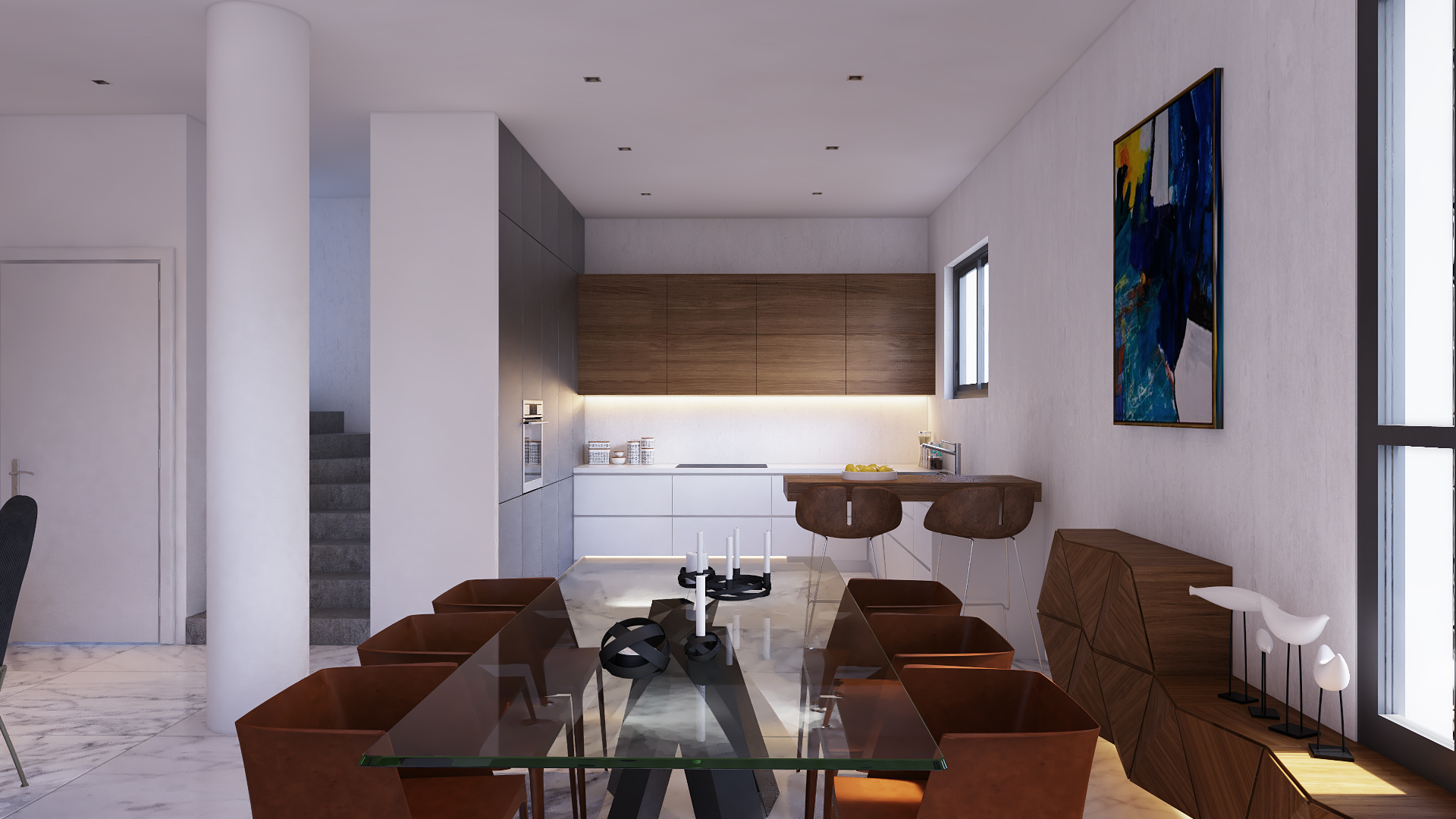 External facades will be covered partly with stone and wood panels facing. A combination of stainless steel and glass railing will give a nice modern, fresh touch to the project and also will plant nicely within the environment.