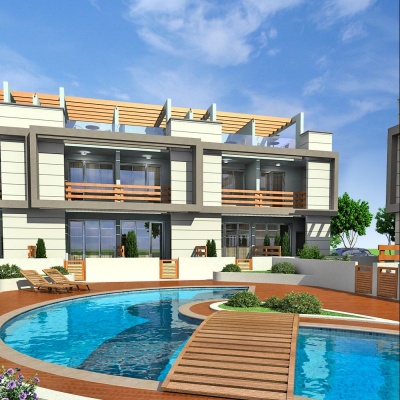 Complex has been designed to provide maximum comfort and coziness It consists of: 12 two bedroom townhouses of covered area starting from 108 to 114 sq. m and plot area starting from 79 to to 153.5 sq.m. On the first level there is a living room, kitchen and guest toilet and on the second level there are two bedrooms and bathroom with WC. All townhouses has its own roof garden.