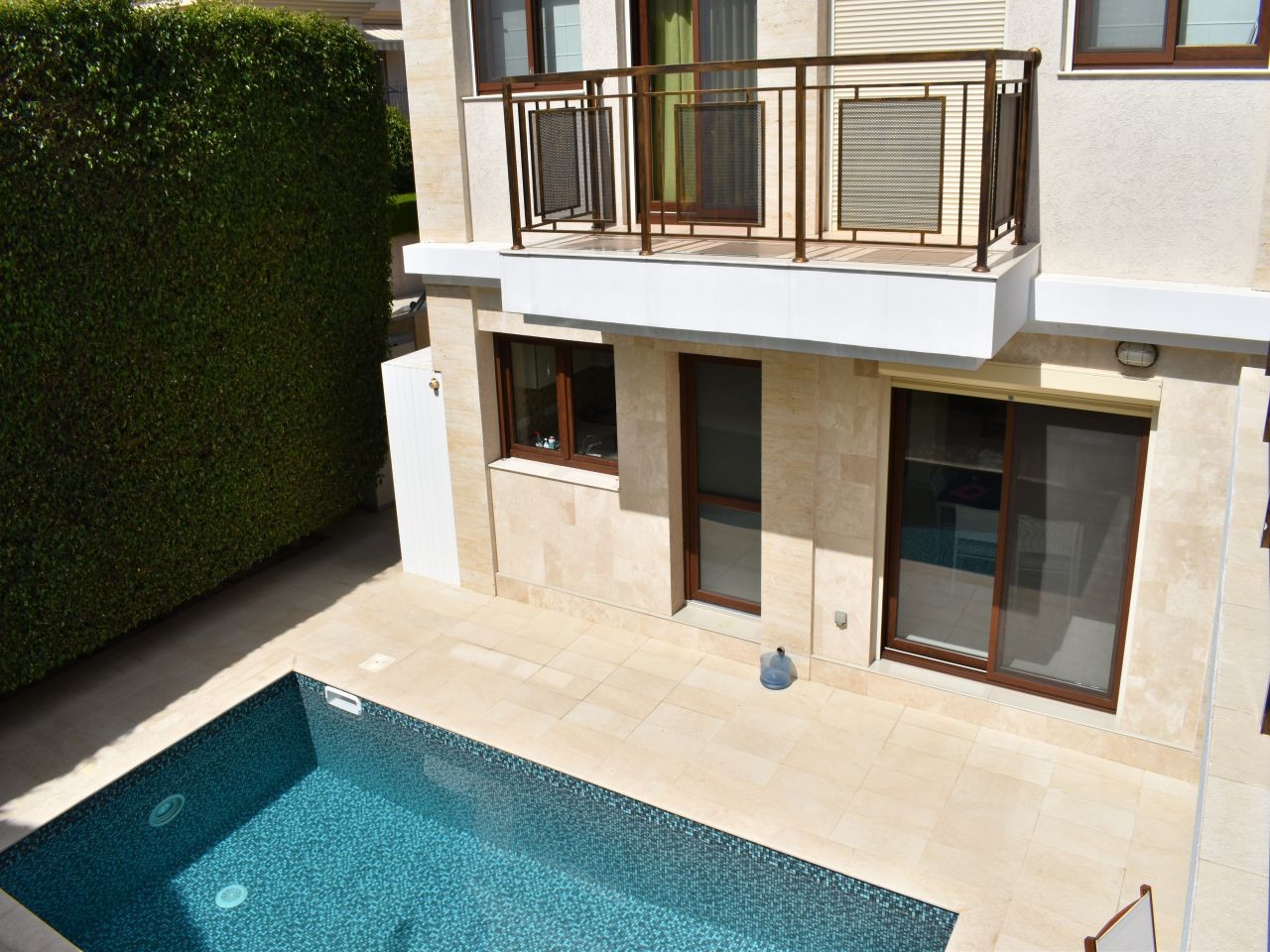 Four bedroom villa with private pool, in the center of the tourist area of Limassol, 200 meters from the beach. The villa is located in a gated complex, within walking distance of the entire infrastructure, close to a large amusement park, playground, cinema Cineplex, supermarkets METRO and Lidl. The villa has an area of 200m2, has 4 bedrooms, an attic on the third floor, which can be used as a games room or rest room, two bathrooms on the second floor (one with a bath, the other with a shower) and a guest toilet on the first floor. The villa is fully equipped with home appliances, including dishwasher, air conditioning, gas heating system, protective blinds on all windows, and mosquito nets. A complete renovation of the villa was made in 2016, the facade of the house was insulated with thermal insulation material, full waterproofing of the walls was made, the facade was finished with the use of natural stone, which gives both an aesthetic appearance and increases the quality of thermal insulation. On a plot of 370m2 green plantings are planted, there is an irrigation system, as well as a gazebo equipped with barbecue. Covered parking for a car.